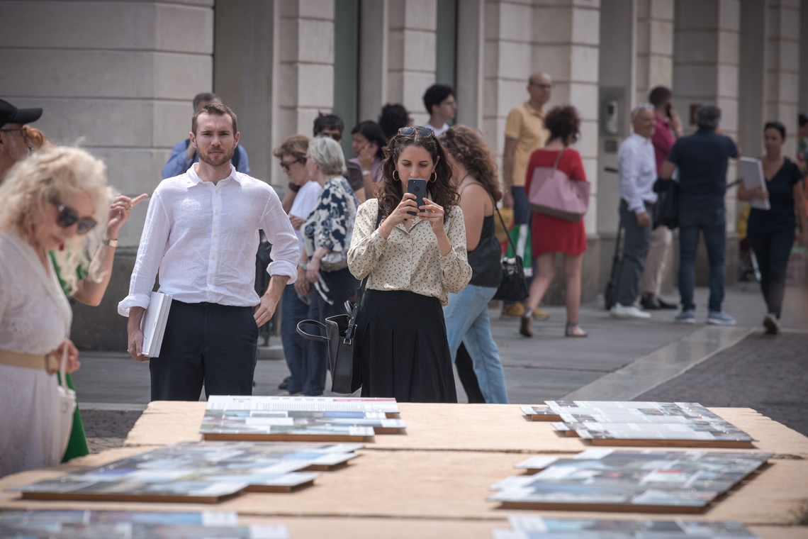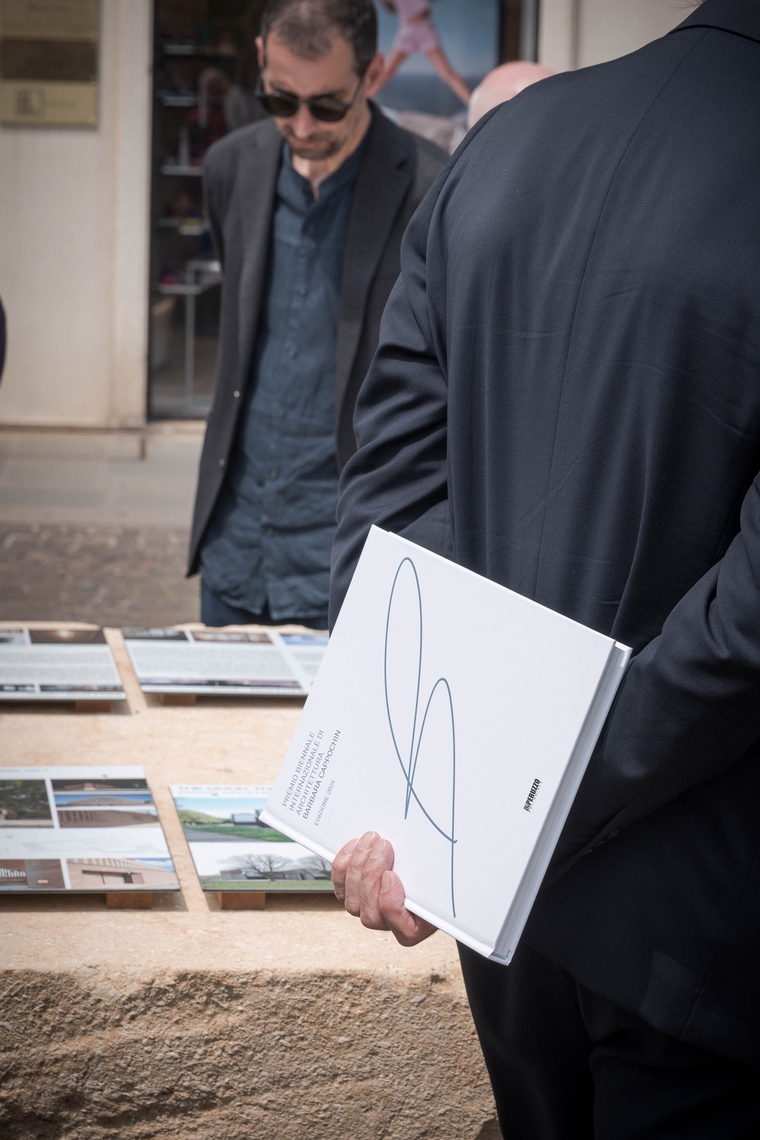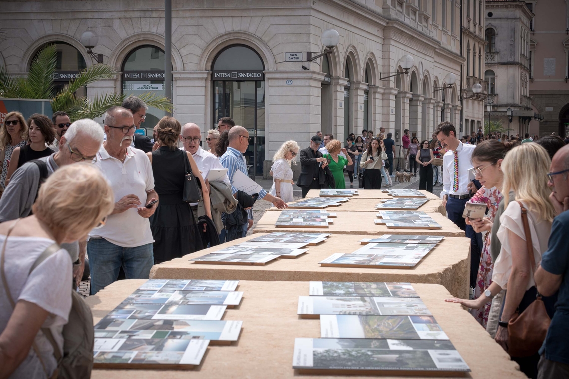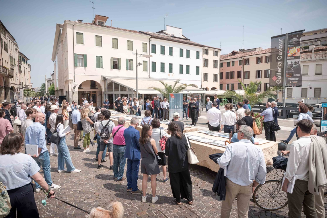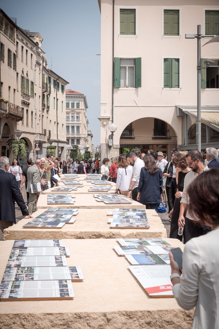 Anche in questa edizione del Premio, le migliori quaranta opere partecipanti sono state esposte sul Tavolo dell’Architettura, progettato da Renzo Piano e collocato nella centralissima Piazza Cavour. Accanto, tra la sede dell’Università e il Municipio, sono stati disposti altri sei blocchi in mattoni e una stele a richiamo e invito alla mostra “Daniele Calabi a Padova – L’architetto e la città nel secondo dopoguerra”, allestita presso la sede della Fondazione Cassa di Risparmio di Padova e Rovigo. In questo modo si è creato un vero e proprio continuum architettonico nel cuore della città di Padova, un percorso simbolico e visivo che unisce idealmente la memoria storica e l’innovazione progettuale, restituendo alla città uno spazio di dialogo tra arte, architettura e comunità.